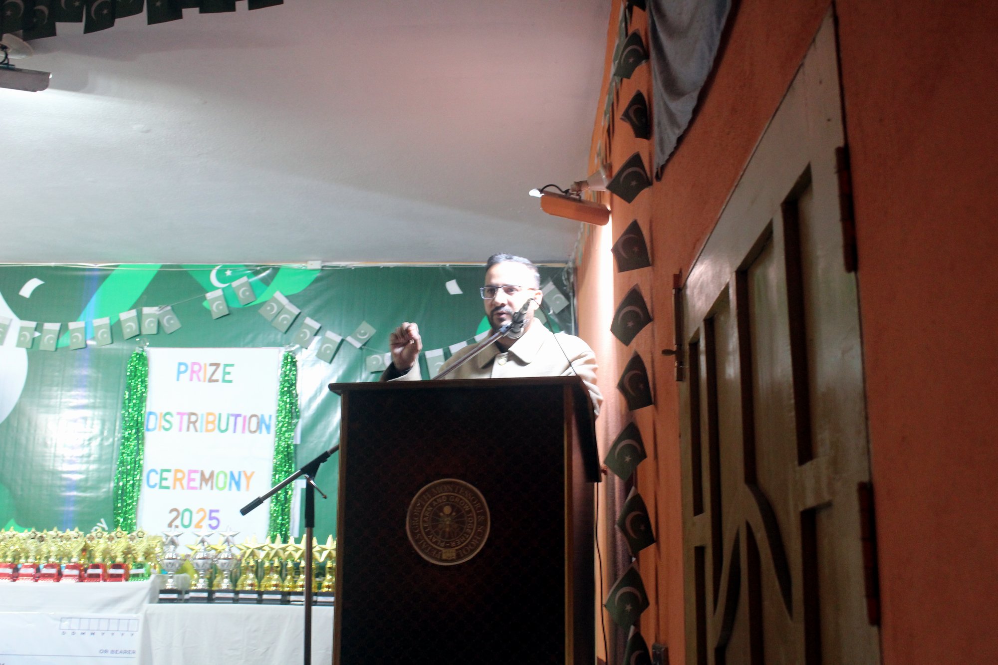 The respected Principal, Sir Saqib Manzoor, delivered an inspiring speech. He appreciated the efforts of students, teachers, and parents for their continuous support and commitment throughout the year. He emphasized the importance of education, discipline, and character building for a bright future.
